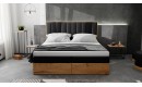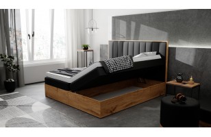 Łóżko kontynentalne TRANI - solidna drewnopodobna konstrukcja, estetycznie wykonane panele na zagłowiu sprawiają, że łóżko idealnie wkomponuje się w każde wnętrze. Łóżko posiada dwie pojemne skrzynie na przechowywanie. Materace wbudowane wykonane są na sprężynach bonell. Do produkcji użyta pianka tapicerska T-25.