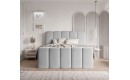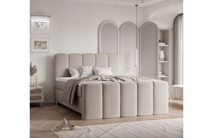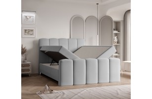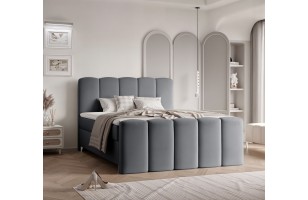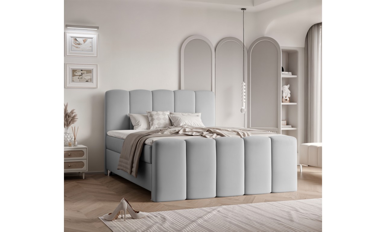 Łóżko kontynentalne VALENTINO to nowoczesna i stylowa propozycja dla osób ceniących komfort, jakość i estetykę. Model wyróżnia się zaokrąglonym zagłówkiem z pionowymi, tapicerowanymi panelami, które nadają mu wyjątkowego charakteru. Co więcej, efektowne panele tapicerowane znajdują się również z przodu i z tyłu łóżka, dzięki czemu prezentuje się ono doskonale i tworzy harmonijną, wyrafinowaną całość .