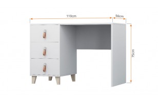 Biurko o szerokości 110cm. Wyposażone w 3 szuflady oraz skórzane uchwyty.