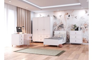 Biurko Figo to idealne połączenie nowoczesnego, skandynawskiego designu z codzienną praktycznością. Jasna kolorystyka mebla w połączeniu z unikalnymi detalami sprawia, że pasuje on zarówno do pokoju dziecięcego, jak i nowoczesnego biura młodzieżowego.