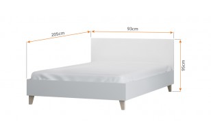 Łóżko jednoosobowe o szerokości 94cm. Wyposażone w drewniane nóżki. Nie posiada pojemnika na pościel.