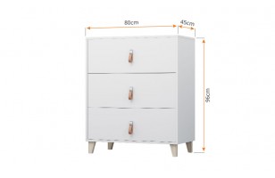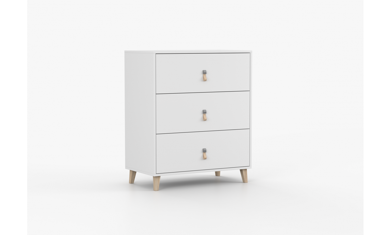 Komoda o szerokości 80cm. Wyposażona w 3 szuflady oraz skórzane uchwyty.