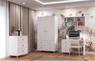 Komoda Figo to kwintesencja skandynawskiego designu, która łączy w sobie lekką formę z niezwykłą pojemnością. To idealny mebel do pokoju dziecięcego lub młodzieżowego, który dzięki jasnej kolorystyce i naturalnym dodatkom wprowadza do wnętrza spokój i harmonię.