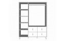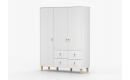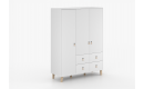 Pojemność bez kompromisów: Trzydrzwiowa konstrukcja mieści w sobie półki, drążek na wieszaki oraz 4 głębokie szuflady.