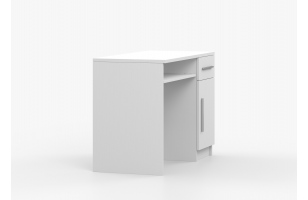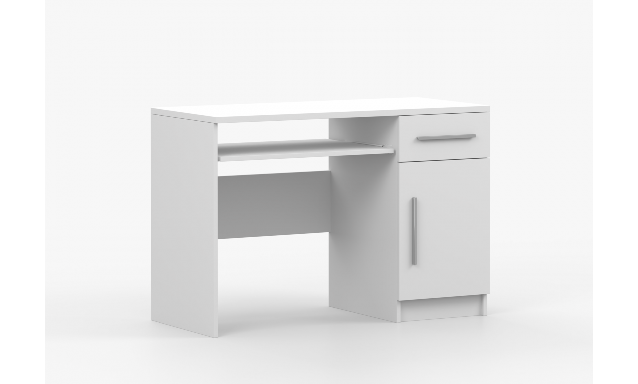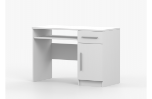 Biurko o szerokości 110cm. Wyposażone w szufladę, szafkę oraz srebrne uchwyty.