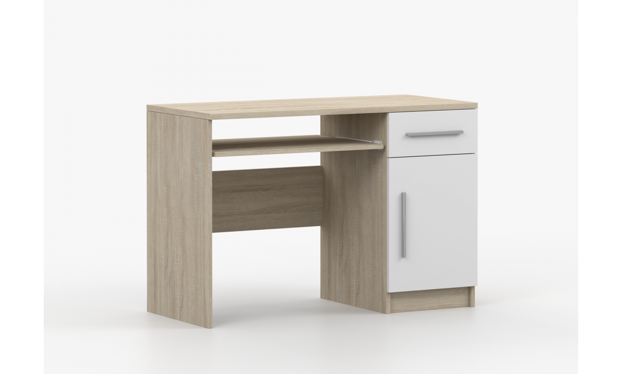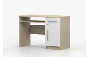 Biurko o szerokości 110cm. Wyposażone w szufladę, szafkę oraz srebrne uchwyty.
