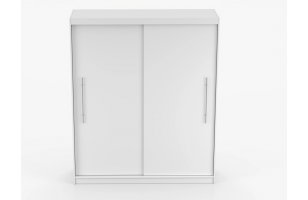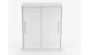 Szafa osadzona jest na stabilnym cokole, co ułatwia utrzymanie czystości, a srebrne, metalowe uchwyty dodają całości nowoczesnego sznytu.