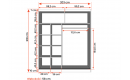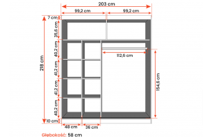 Wymiary: szerokość 203 cm, wysokość 218 cm, głębokość 58 cm.