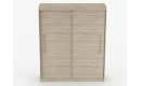 Szafa osadzona jest na stabilnym cokole, co ułatwia utrzymanie czystości, a srebrne, metalowe uchwyty dodają całości nowoczesnego sznytu.