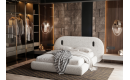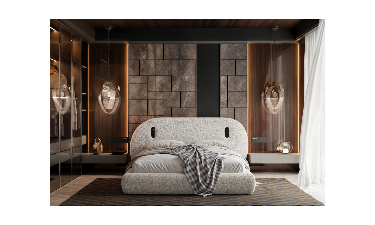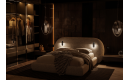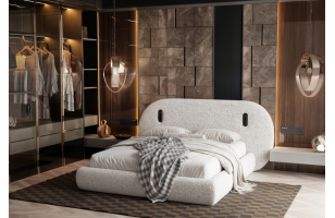 • Designerskie Wezgłowie: Szerokie, owalne zagłowie (190 cm) wychodzi poza obrys ramy, tworząc efektowny panel ścienny. Taki zabieg optycznie powiększa sypialnię i nadaje jej szlachetnego charakteru.
