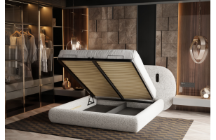 Model OVAL to harmonijne połączenie luksusowej estetyki z bezkompromisową praktycznością. Dzięki charakterystycznej, zaokrąglonej linii zagłowia oraz zintegrowanemu oświetleniu LED, łóżko prezentuje się niezwykle prestiżowo w każdej aranżacji, stając się centralnym punktem sypialni. To mebel stworzony dla tych, którzy szukają  nowoczesnego szyku.