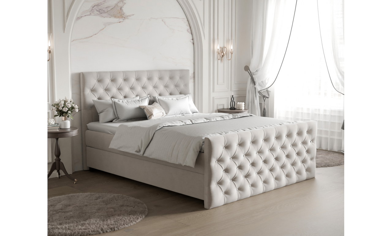 Model AVERSA to synonim elegancji i luksusowej funkcjonalności. Wyposażone w charakterystyczny, pikowany zagłówek oraz dwa pojemne schowki na pościel, łączy w sobie ponadczasowy styl glamour z praktycznym rozwiązaniem do każdej sypialni. Solidna konstrukcja na sprężynach bonell oraz opcjonalny topper (5 cm lub 8 cm) gwarantują regenerujący sen na najwyższym poziomie.
